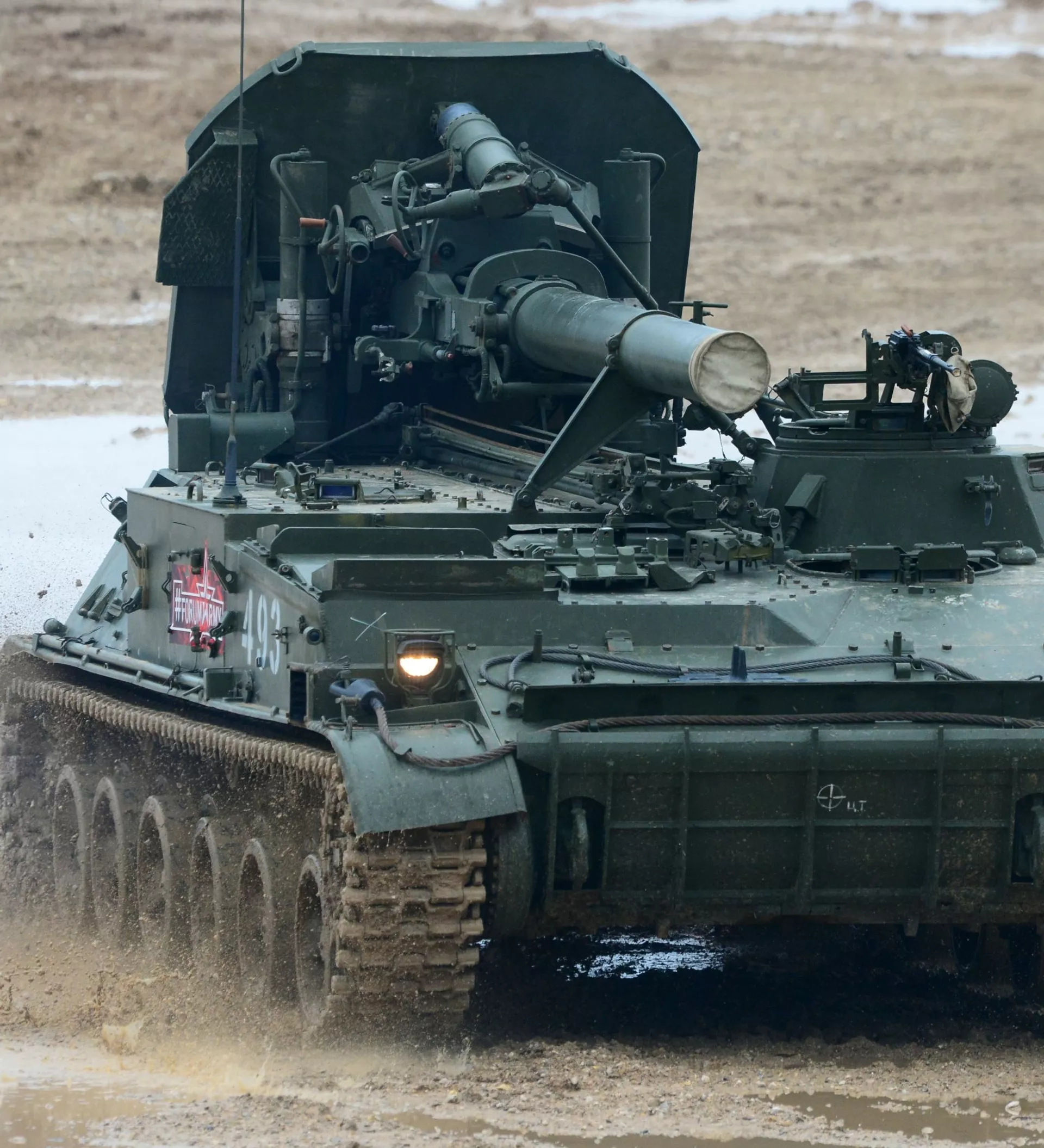 Kalba eina apie 240 mm minosvaidį 2S4 "Tiulpan" ir 203 milimetrų haubicą 2S7 "Pion". Abu ginklai sugeba šaudyti branduoliniais sviediniais. To paties, anot leidinio, "NATO būtų išmokusi, jei šaltasis karas virstų karštoju".