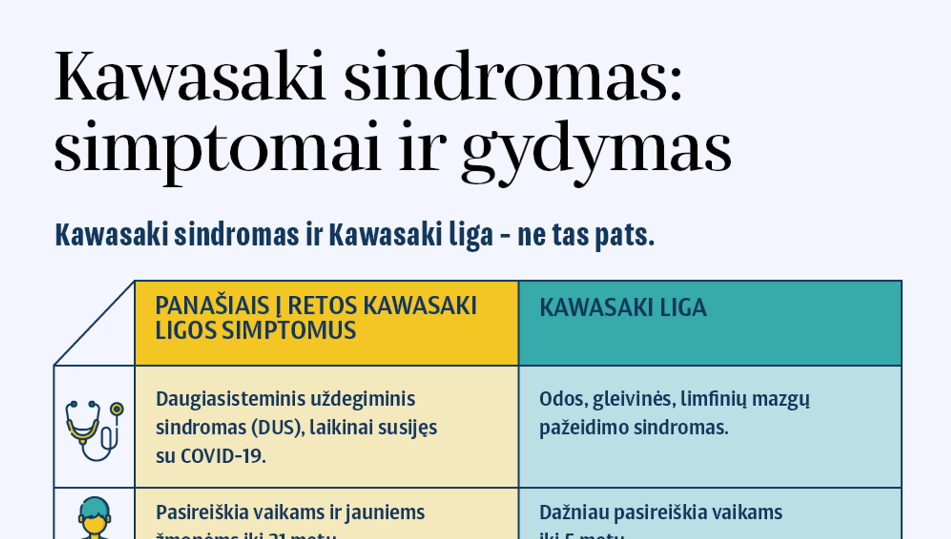 Tačiau iš tikrųjų jie nėra tas pats. Kawasaki liga pasireiškia mažiems vaikams iki penkerių metų, o į Kawasaki panašus sindromas nustatomas vaikams ir paaugliams iki 21 metų.