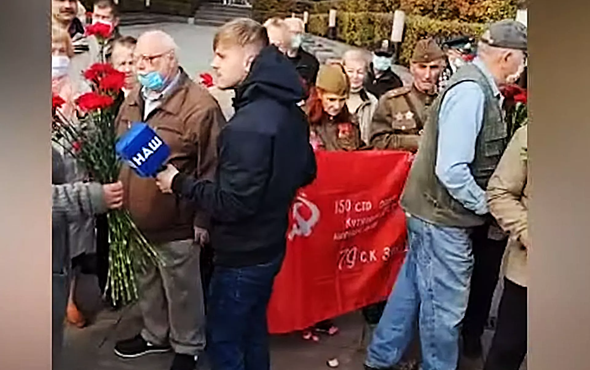 Kijeve policija neleido veteranams išskleisti Pergalės vėliavos per Ukrainos išlaisvinimo iš nacių įsibrovėlių dieną. Vaizdo įrašas paskelbtas "Ukraine.ru" "YouTube" kanale.