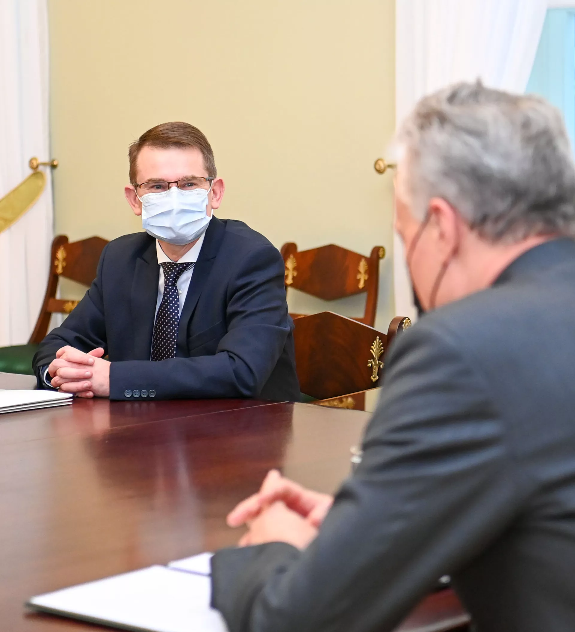 VILNIUS, sausio 5 — Sputnik. Lietuvos prezidentas Gitanas Nausėda susitiko su sveikatos apsaugos ministru Arūnu Dulkiu aptarti nacionalinį planą kovai su koronavirusu ir vakcinacijos strategiją Lietuvoje 2021 metais.