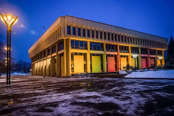 Lietuvos nacionalinės Martyno Mažvydo bibliotekos pastatas Laisvės gynėjų dienos proga apšviestas trispalvės šviesomis.
