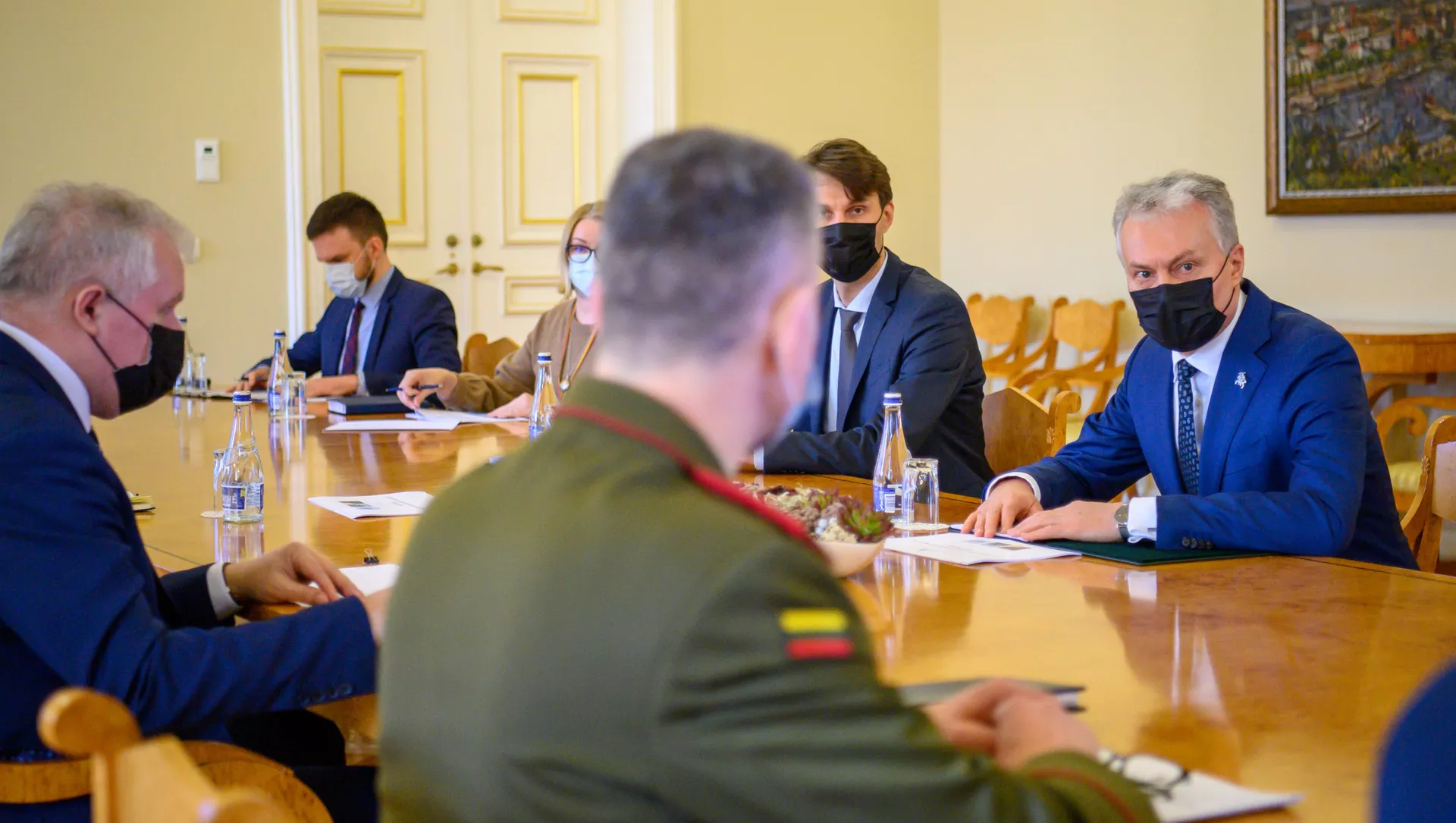 Prezidentas Gitanas Nausėda susitiko su krašto apsaugos ministru Arvydu Anušausku ir kariuomenės vadu gen. ltn. Valdemaru Rupšiu