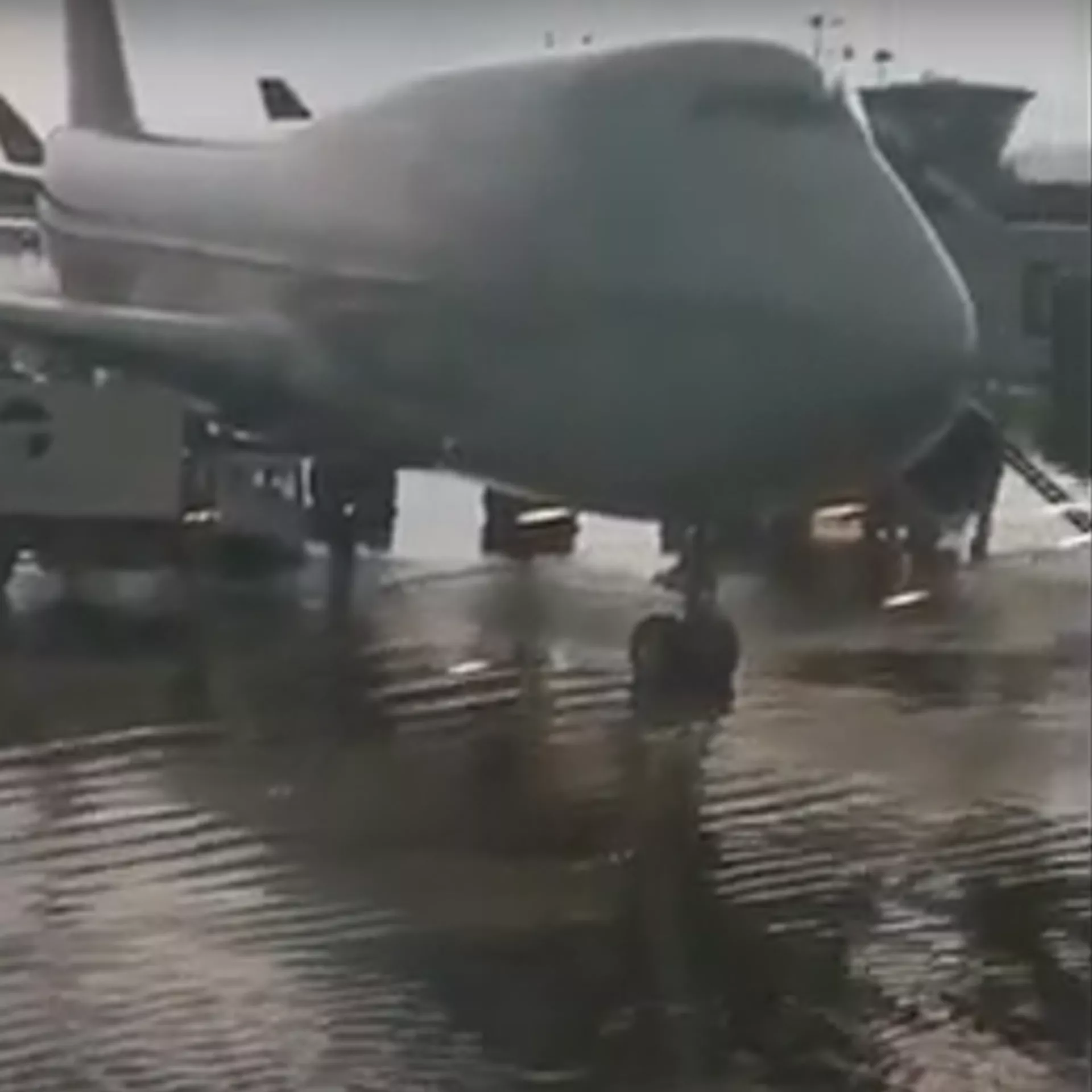 Filmuotoje medžiagoje matyti didžiulės balos, kuriose stovi lėktuvai. Kita vertus, agentūros pašnekovai pažymėjo, kad kilimas ir nusileidimas vyksta įprastu režimu.