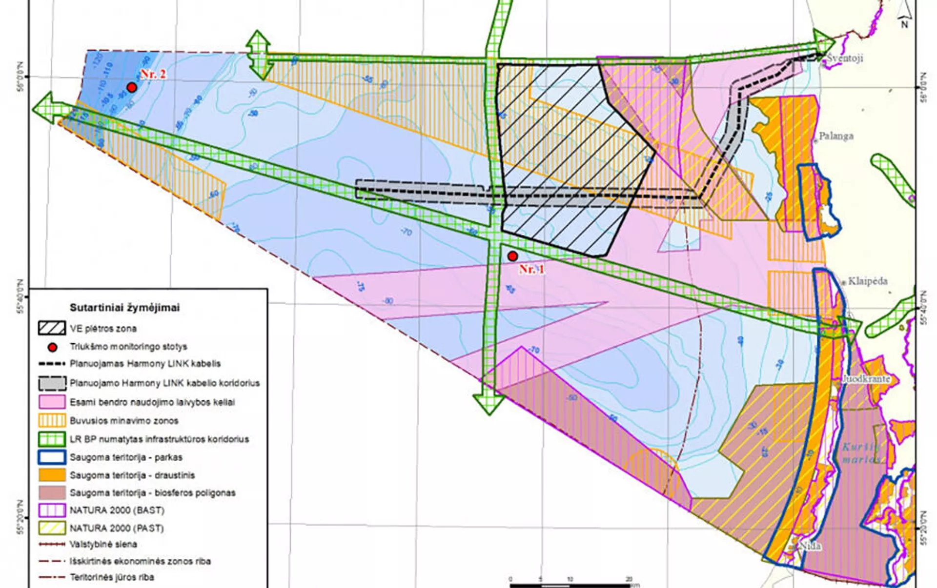 2020 m. atnaujinto jūros būklės vertinimo pagal Jūrų strategijos pagrindų direktyvos reikalavimus metu buvo įvertinti potencialūs impulsinio ir nuolatinio žemo dažnio triukšmo šaltiniai Lietuvos jūros rajone, nustatytos triukšmui jautrios teritorijos ir zonos, kur tikėtinas triukšmo poveikis gyviems organizmams (daugiausia remiantis triukšmo sklaidos modeliavimo rezultatais ir kitų valstybių patirtimi).